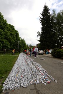 Napätie vyvrcholilo natiahnutím pásma. Úsmev na tvári zástupcu slovenských rekordov Michala Svítoka síce nasvedčoval možný úspech, ale pokiaľ deti nemali oficiálny výsledok, nič isté nebolo. Veľmi ich mrzelo, že pri práci mali časový limit a nestihli pospájať všetky pripravené reťaze. Celú reťaz deti následne zrolovali na veľkú „špulku“ a čakali na verdikt Michala Svítoka. Jeho slová boli skutočným balzamom: „Rekord je platný, reťaz má dĺžku 2 550 metrov...“ Zo všetkých prítomných v tej chvíli opadla tréma a napätie nahradila obrovská radosť. Park v tú chvíľu objalo svojimi lúčmi aj slniečko.