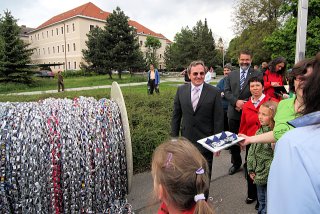 Deti svojej reťazi dali meno Aluména a minister životného prostredia ju pokrstil, ako inak, hliníkovými viečkami.